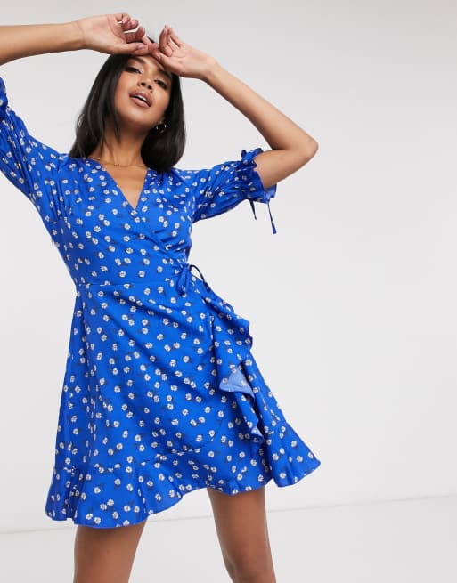 Mini Wrap Dress In Blue Little Floral Print Fs Collection Silkfred Us